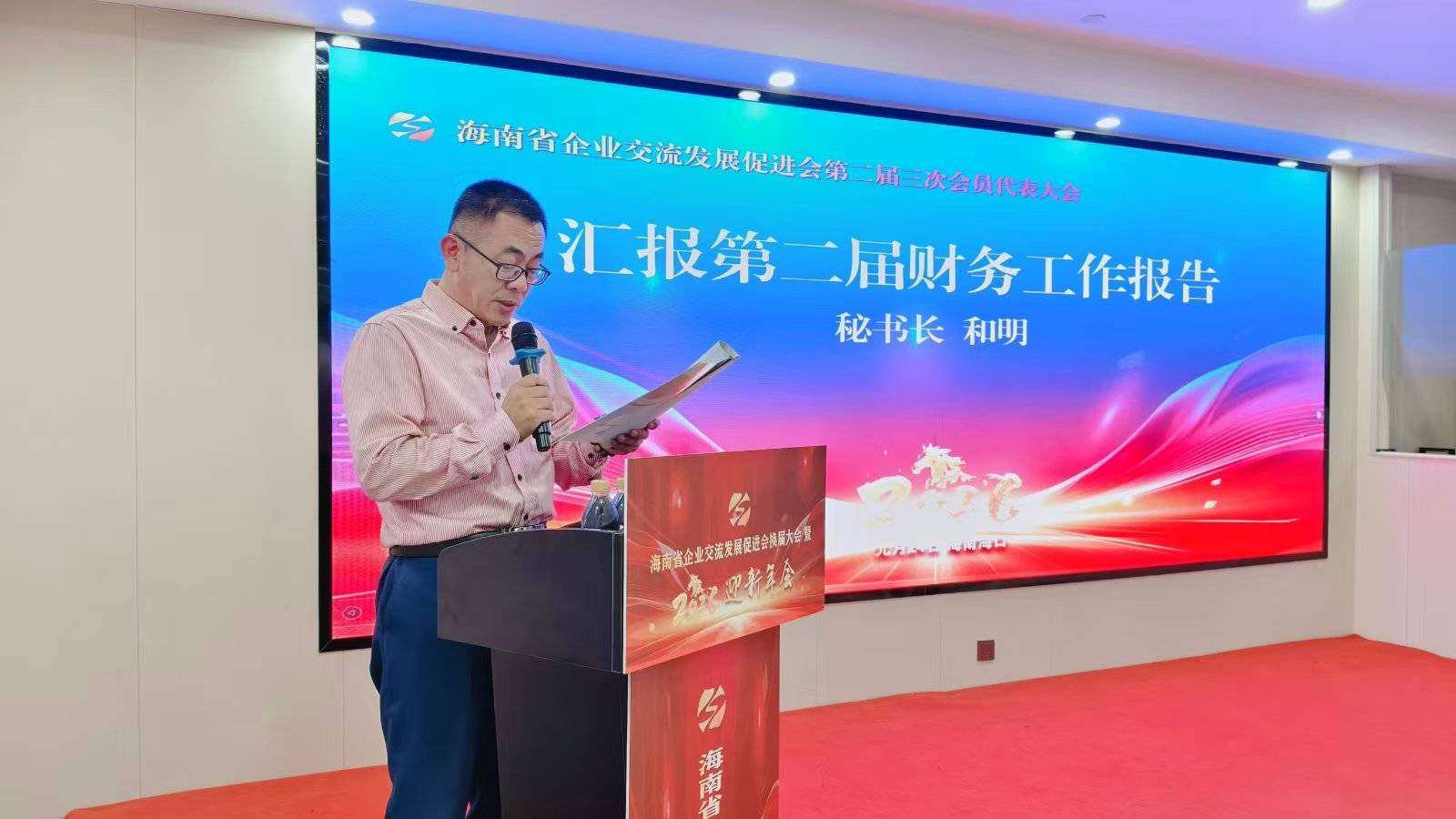 第二届海南省企业交流发展促进会秘书长和明在会上作工作报告。他全面回顾了过去三年里,促进会在强化政治引领、服务发展大局、投身公益事业、规范自身建设等方面所取得的显著成效。过去三年,促进会积极组织各类活动,为企业搭建交流合作平台,助力企业解决发展难题;在公益领域,踊跃参与社会救助、扶贫帮困等工作,展现了企业的社会责任与担当;在自身建设方面,不断完善内部管理机制,提升服务能力和水平。